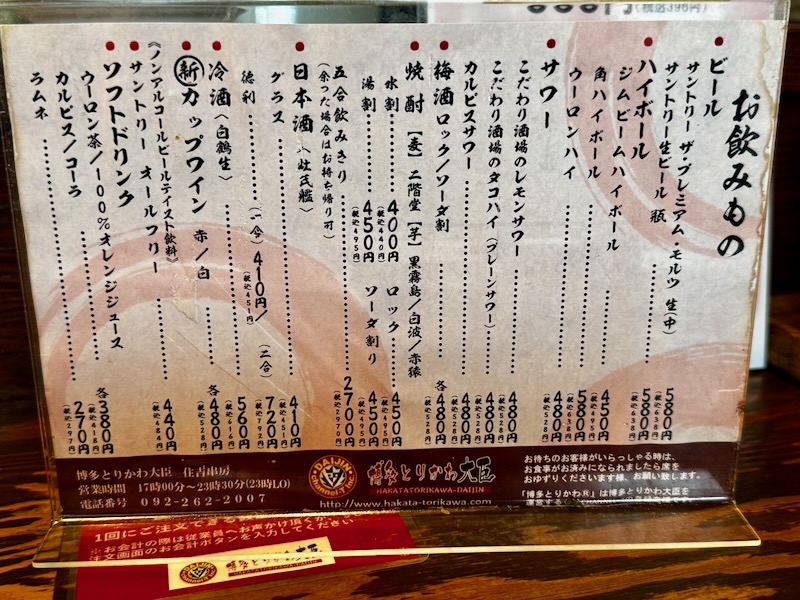 でも、ここへ来る人のほとんどが、「博多とりかわ」を10本単位で注文すると思うので、客単価はそれナリにいくのかな、とか考えちゃいました^^;