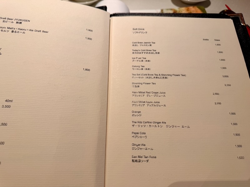 生ビールは、熟撰とプレモルと2種類あって、どちらも1,900円というリッツ価格!