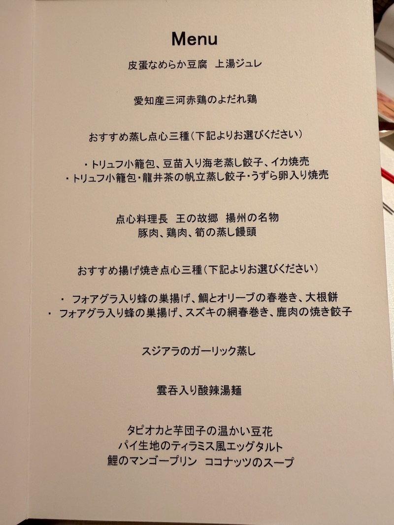 最初の2品と比べると、その後の印象が薄めなんですが、点心をもっと勉強しなくては、という気にナリました。