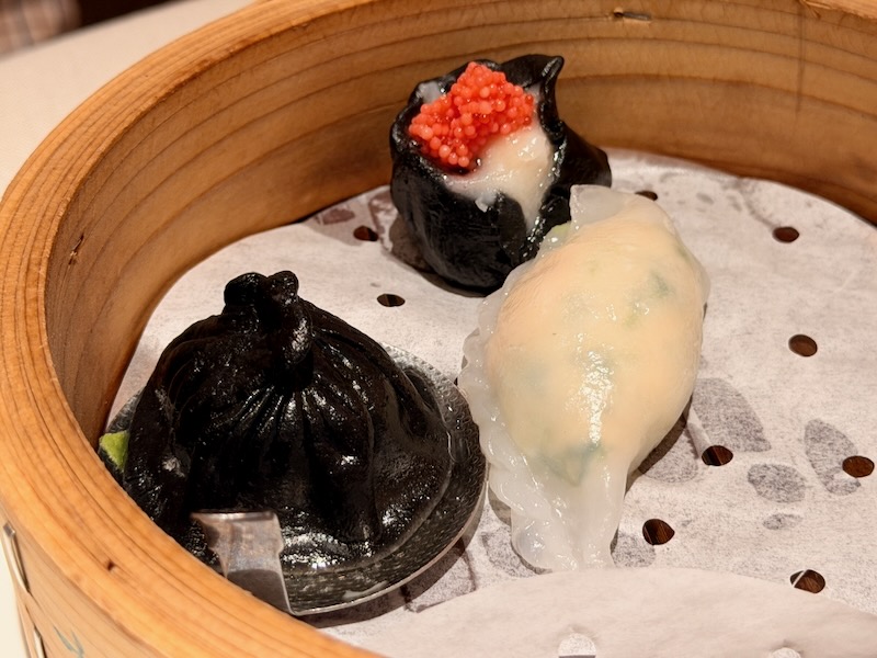 ・トリュフ小籠包、豆苗入り海老蒸し餃子、イカ焼売